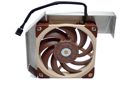 The strategically placed Noctua 120mm fan bracket critically lowers CPU temps, while cooling the VRM circuitry and the always prone to high temps 10GbE chip.